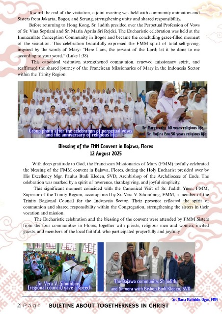 reaffirmed the shared journey of the Franciscan Missionaries of Mary in the Indonesia Sector
