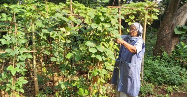 Sr.Ina FMM sedang memanfaatkan tanah kosong yang ada di depan biara FMM di Watuapi, Kabupaten...